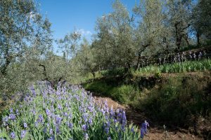 Il territorio in cui l’Iris di Firenze viene coltivato è rappresentato da terreni tendenzialmente poveri, carenti sia di sostanza organica sia di umidità, per evitare che il rizoma muffisca e per far sì che si ottenga una polvere molto odorosa. L’ambiente ideale per la coltivazione dell’“Iris di Firenze” è rappresentato da terreni di media e alta collina asciutti e drenanti, ma non eccessivamente aridi, ricchi di galestri policromi (scisti argillosi o marnosi talvolta impregnati di silice) o di alberesi (ricchi di calcare), né troppo sciolti né troppo compatti. Spesso si scelgono luoghi dove sono presenti filari di olivi o di viti, su terrazzamenti destinati ad un tipo di coltura integrativa. L’Iris svolge un ruolo estremamente importante a livello ambientale: la sua elevata rusticità gli permette di adattarsi ad ambienti marginali e sfavorevoli per altre coltivazioni, consentendo la coltivazione anche in zone che altrimenti rischierebbero di essere abbandonate dal punto di vista agricolo.